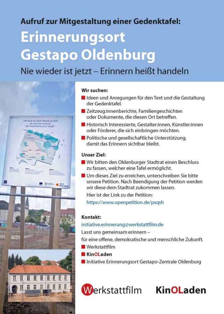 Aufruf zur Mitgestaltung einer Gedenktafel:ErinnerungsortGestapo Oldenburg
